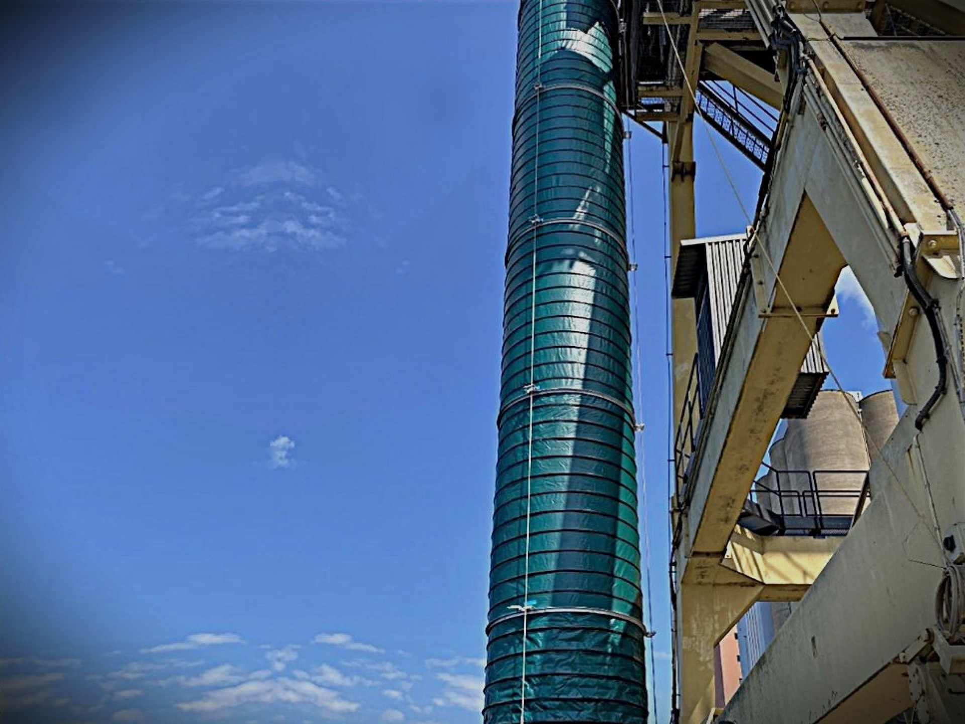 Lantmännen havde brug for at udskifte en 20 meter lang bælg på en bådlæsser i Helsingborgs havn. Jobbet krævede arbejde 25-28 meter over vandet, hvilket krævede personale, der ikke var bange for højder, omhyggelige risikovurderinger og godt vejr.