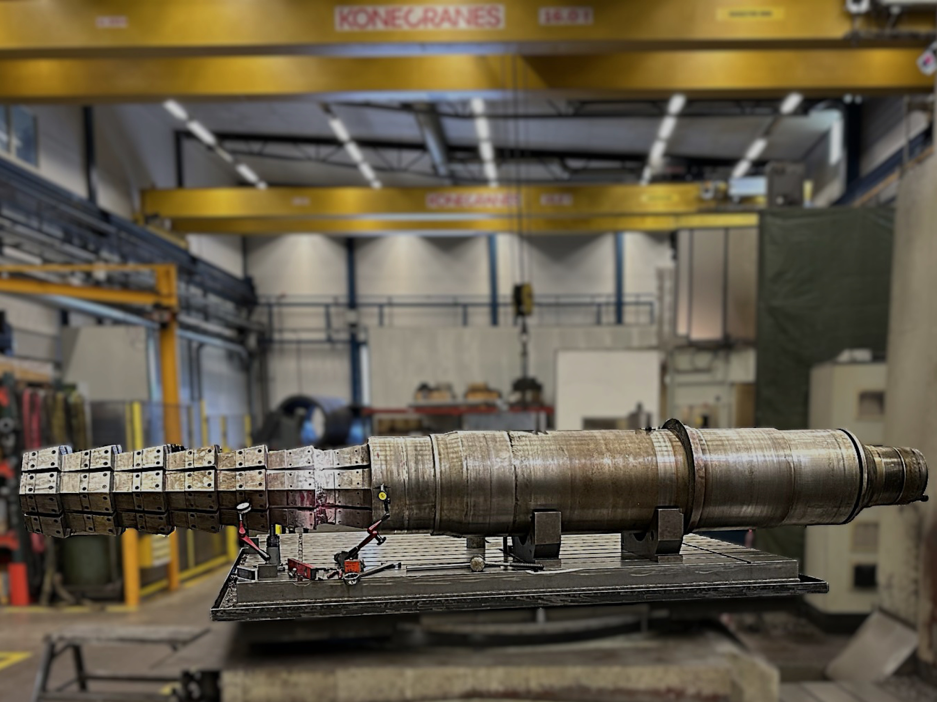 Jernbro mobilized its construction department in Finspång and the machine workshop in Avesta to handle the entire renovation. The team spliced the shaft using advanced drilling, heating, and cooling techniques, followed by precision machining and constant measuring to secure perfect tolerances.